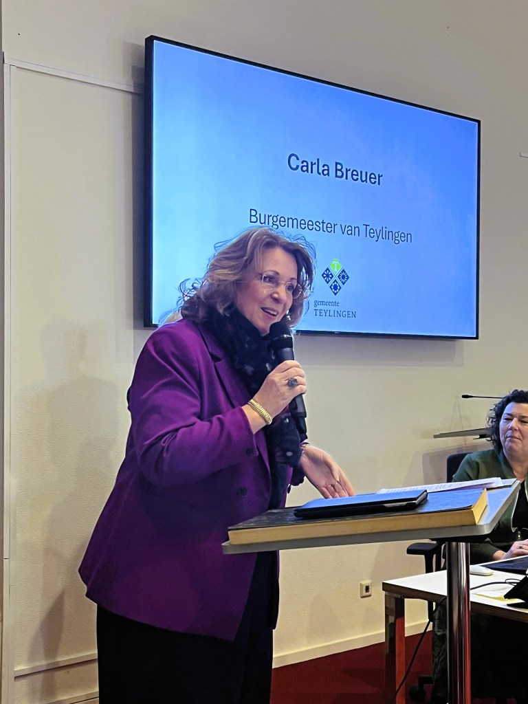 Daarna spreekt Carla Breuer, burgemeester van Teylingen. Zij vindt het leuk om erbij te zijn en verbaast zich over de grote groep belangstellenden. Ook zijn er raadsleden en mensen van de diverse historische verenigingen bij. Hoewel er veel scepsis bij de fusie is geweest, merkt iedereen toch dat de eigenheid en de sfeer van de drie verschillende dorpen zijn gebleven. Hoewel zij nog niet eerder van de Openbaarheidsdag heeft gehoord, vindt zij het toch belangrijk voor de democratie.