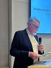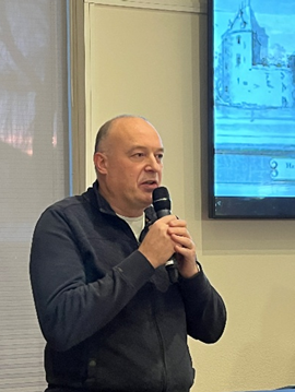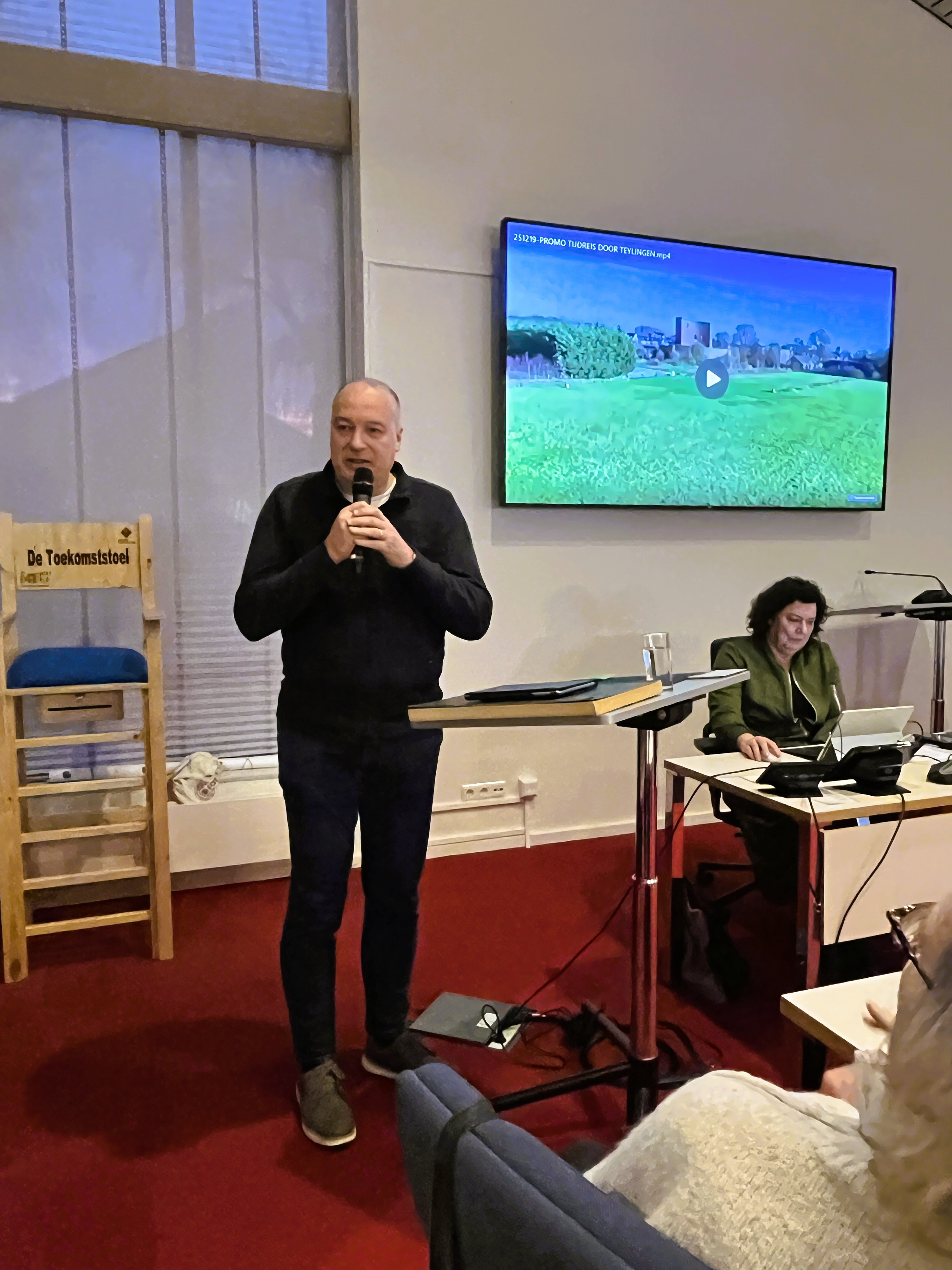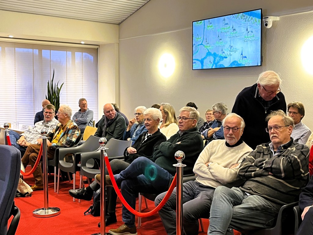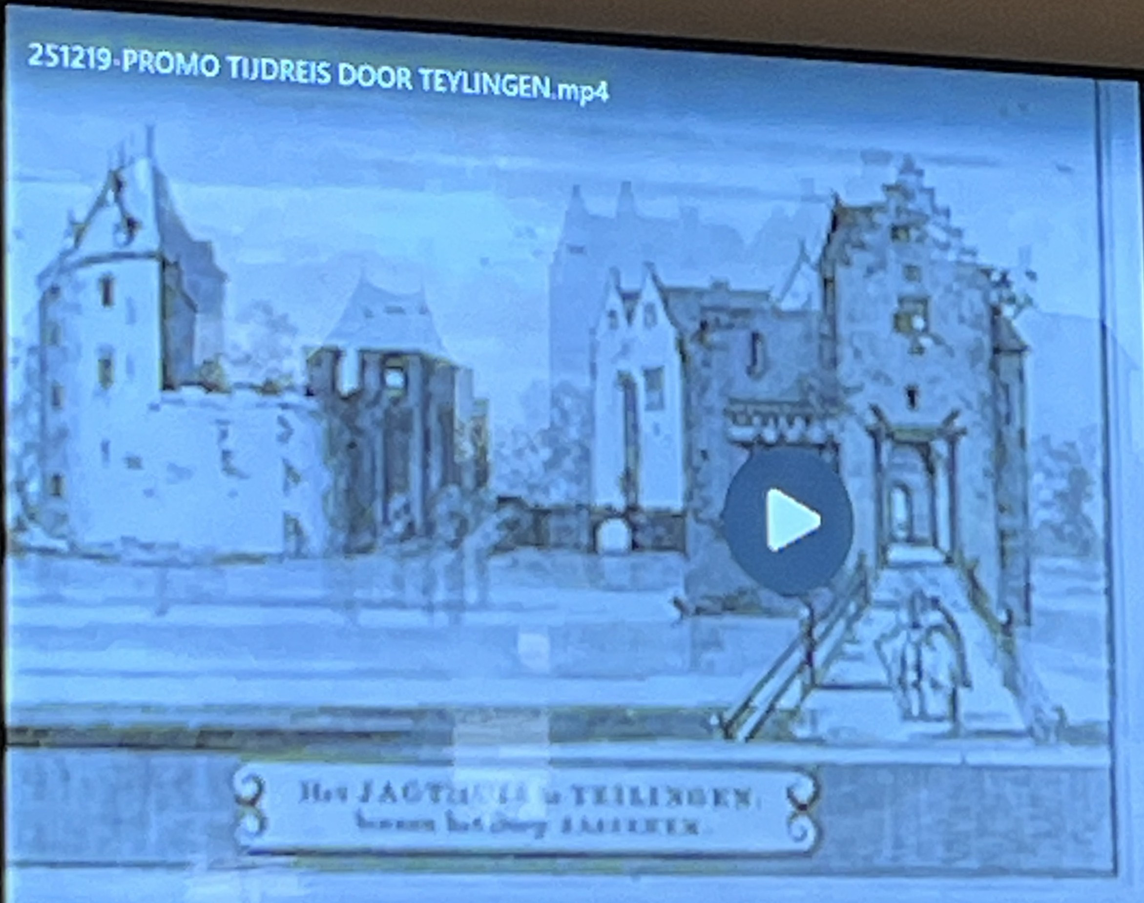 Hierna geeft André van Noort, bestuurslid van historische vereniging Warmelda, een toelichting bij een film over de drie dorpen, waarin historische beelden door middel van AI tot leven komen. Deze drie korte films, Tijdreis door Warmond, Tijdreis door Voorhout en Tijdreis door Sassenheim, zijn te vinden op YouTube. Zie ook Erfgoed Leiden en omstreken.