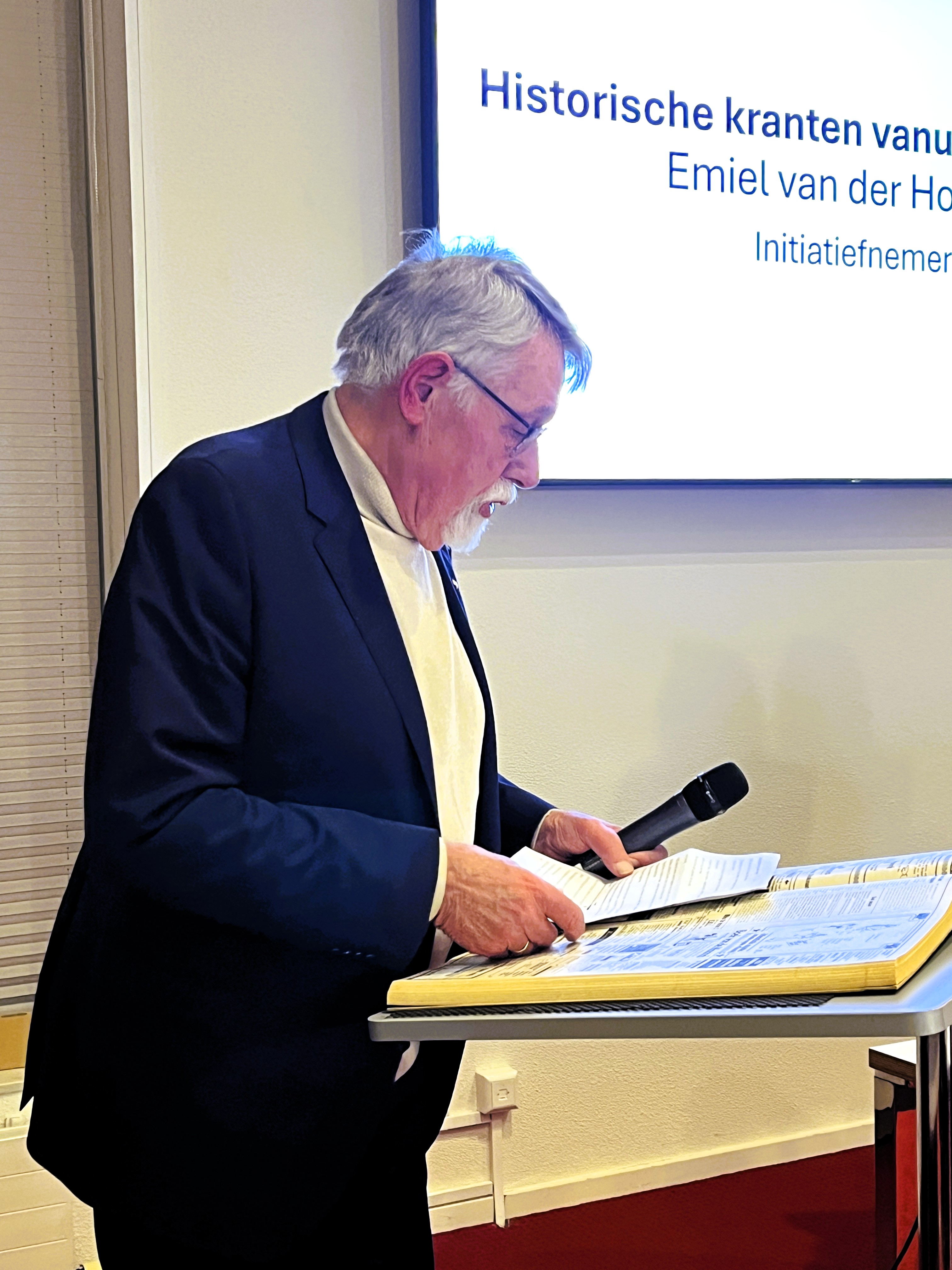 Over dit laatste met als titel “Historische kranten vanuit je luie stoel” houdt Emiel van der Hoeven van de Historische Kring Voorhout, zijn verhaal. Sinds 1860 zijn er nogal wat regionale dagbladen geweest. Later verschijnen er ook plaatselijke weekbladen. Doordat er minder journalisten bij deze bladen komen, wordt steeds meer een eigen inbreng verwacht. Het opzoeken in oude kranten kost erg veel tijd. Sinds de digitalisering is dat een stuk makkelijker geworden. Wel is dit laatste een enorme klus die door de historische verenigingen op zich genomen wordt. Zie ook Erfgoed Leiden en omstreken.
