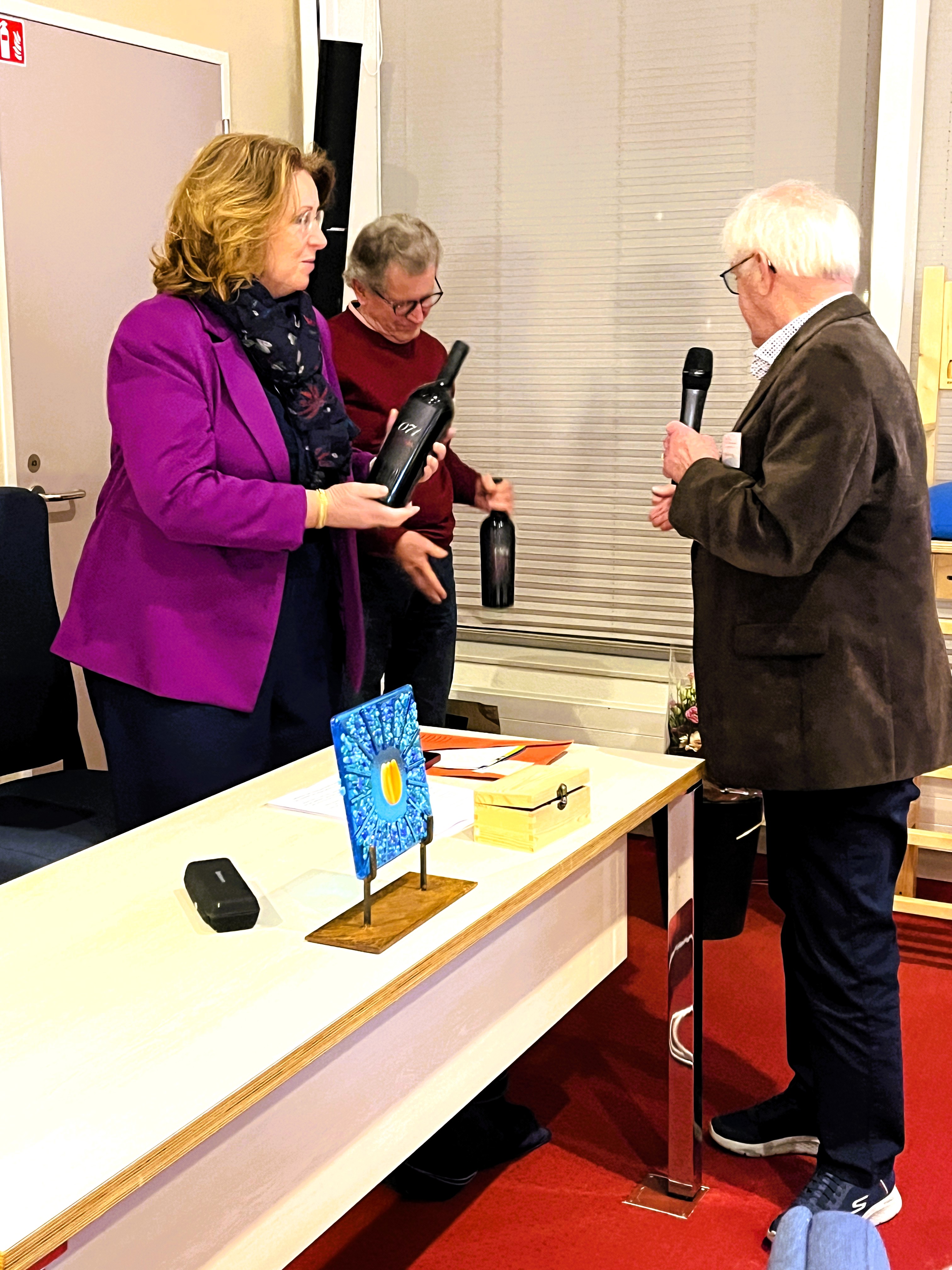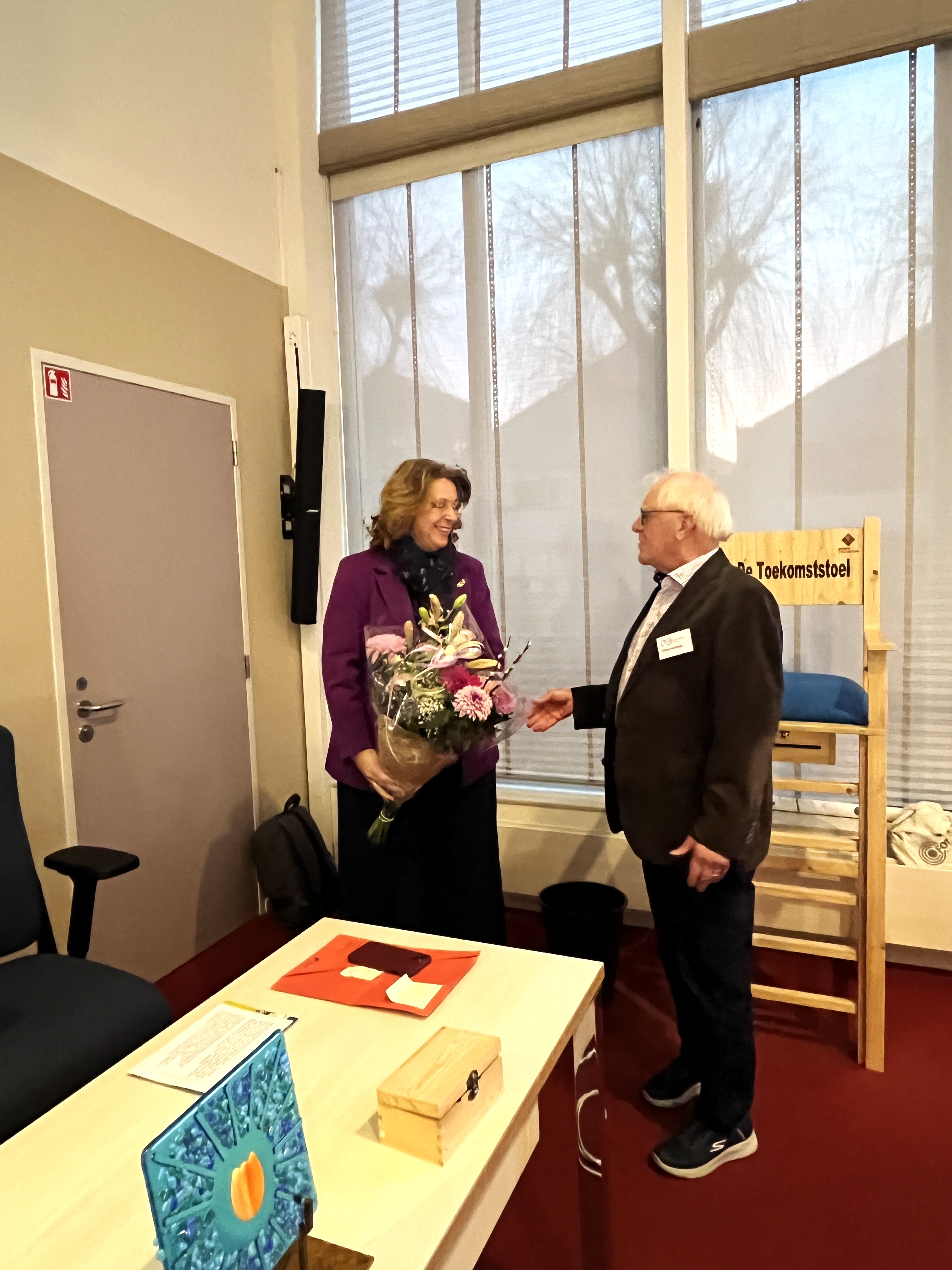 Wilbert Hettinga sluit de bijeenkomst af met een klein presentje voor