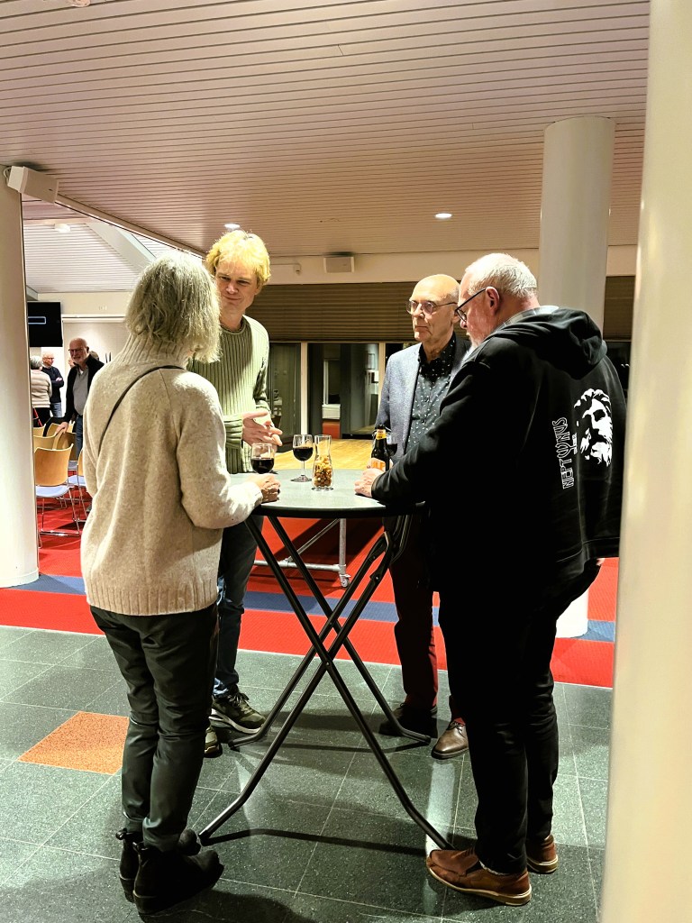 De gebruikelijk borrel is zoals gewoonlijk weer erg gezellig. Deze keer met hapjes en drankjes van de gemeente Teylingen, waarvoor onze hartelijke dank. Onze dank gaat ook uit naar Arlette de Haas, Yvonne Flippo en Ingrid Pot van ELO voor de organisatie ter plekke.