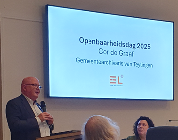 Cor de Graaf, gemeentearchivaris van Erfgoed Leiden en Omstreken en daarmee ook van Teylingen, vertelt over het dit jaar openbaar maken van stukken uit het archief. Ook hij benadrukt het belang van transparantie en openbaarheid voor de democratie.