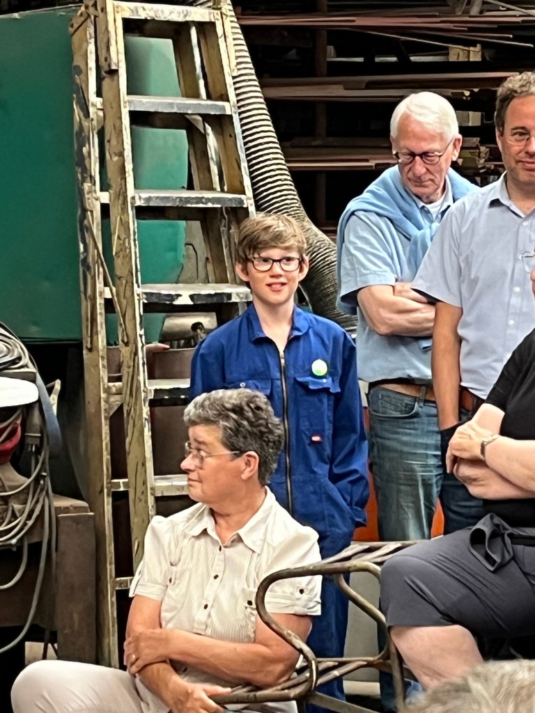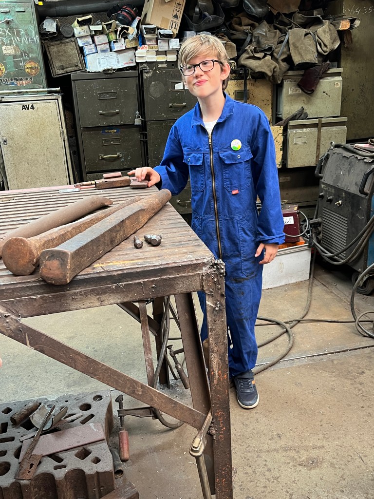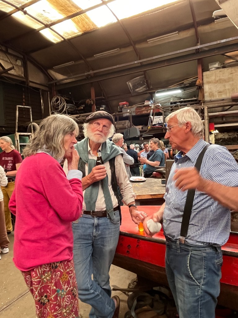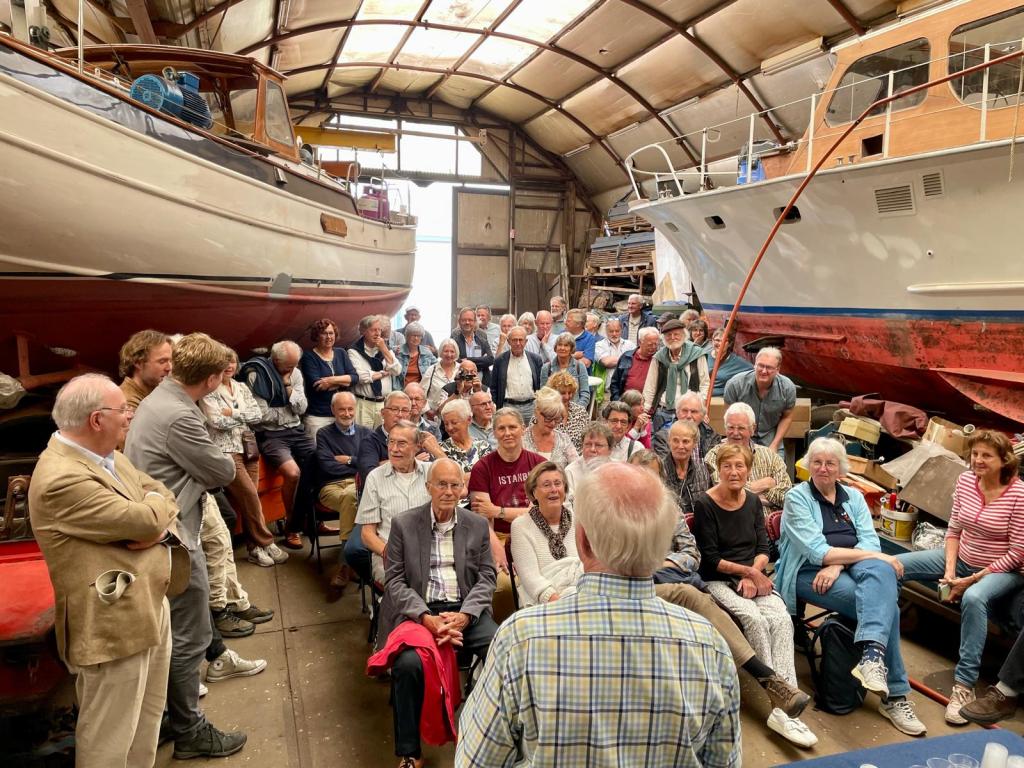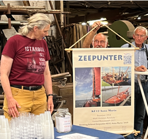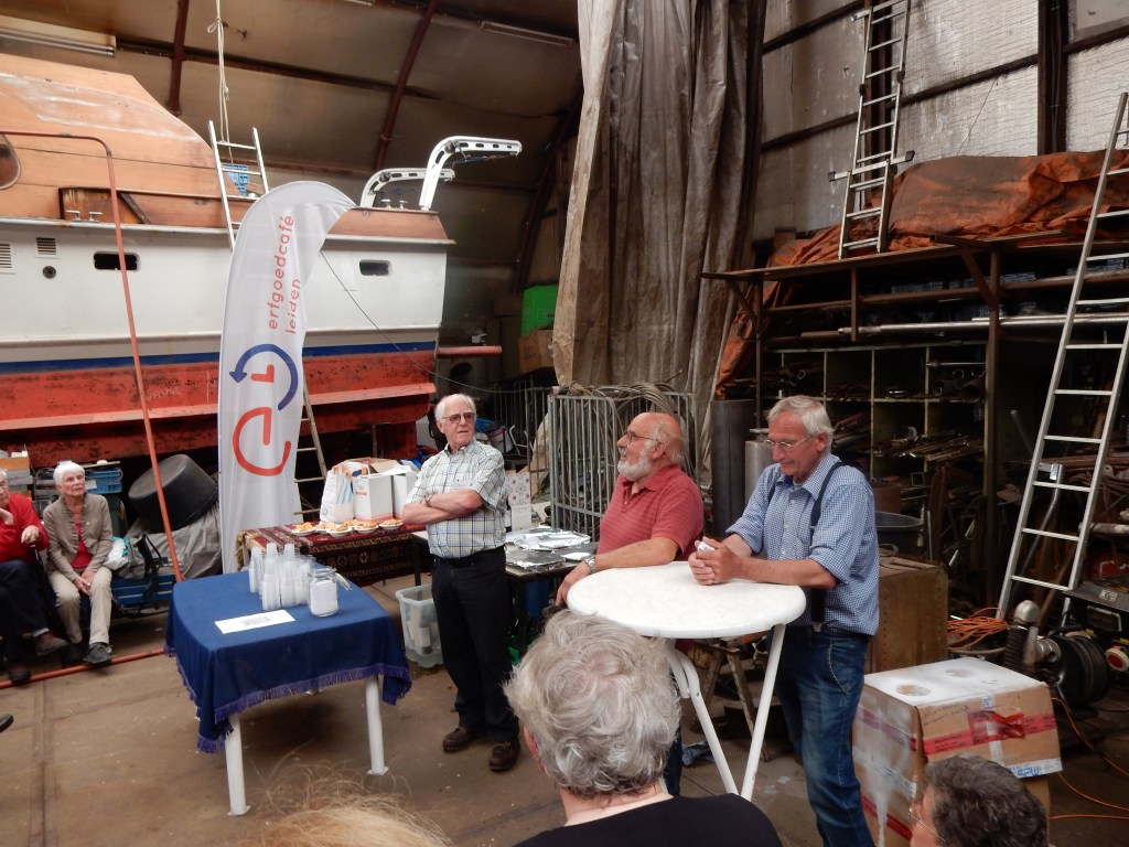 Ton Stallinga en Jan van Vliet zijn niet zo van de voordrachten, maar laten liever alles zien met de bijbehorende verhalen. Ook Reinier Verbeek (van het schip de Vriendschap) verzorgt rondleidingen om aan iedereen zoveel mogelijk over de werf te kunnen vertellen. En last but not least geeft de jongste “medewerker”, Dorian, een demonstratie klinknagelen.