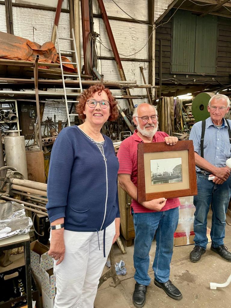 Tot slot Willy Kop-Tijssen: Zij klimt als laatste op de Zeepkist en is een kleindochter van een van de oprichters van de Scheepswerf De Hoop, later Scheepswerf Gebroeders Tijssen. Zij wil graag een ingelijste foto van de oude scheepswerf van haar opa overhandigen aan Ton Stallinga. Deze is er zichtbaar erg blij mee.