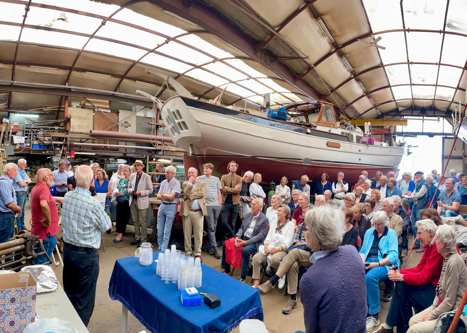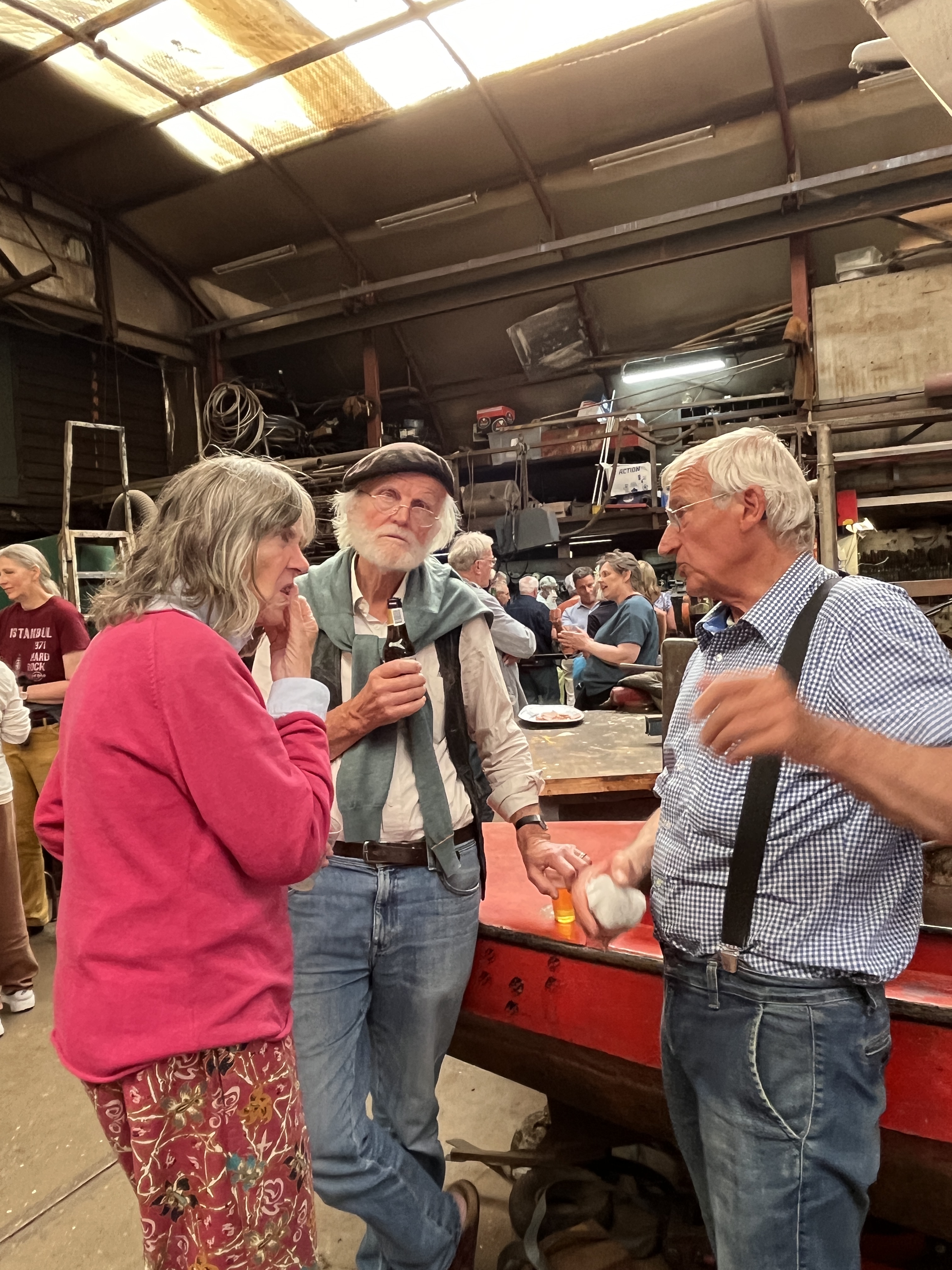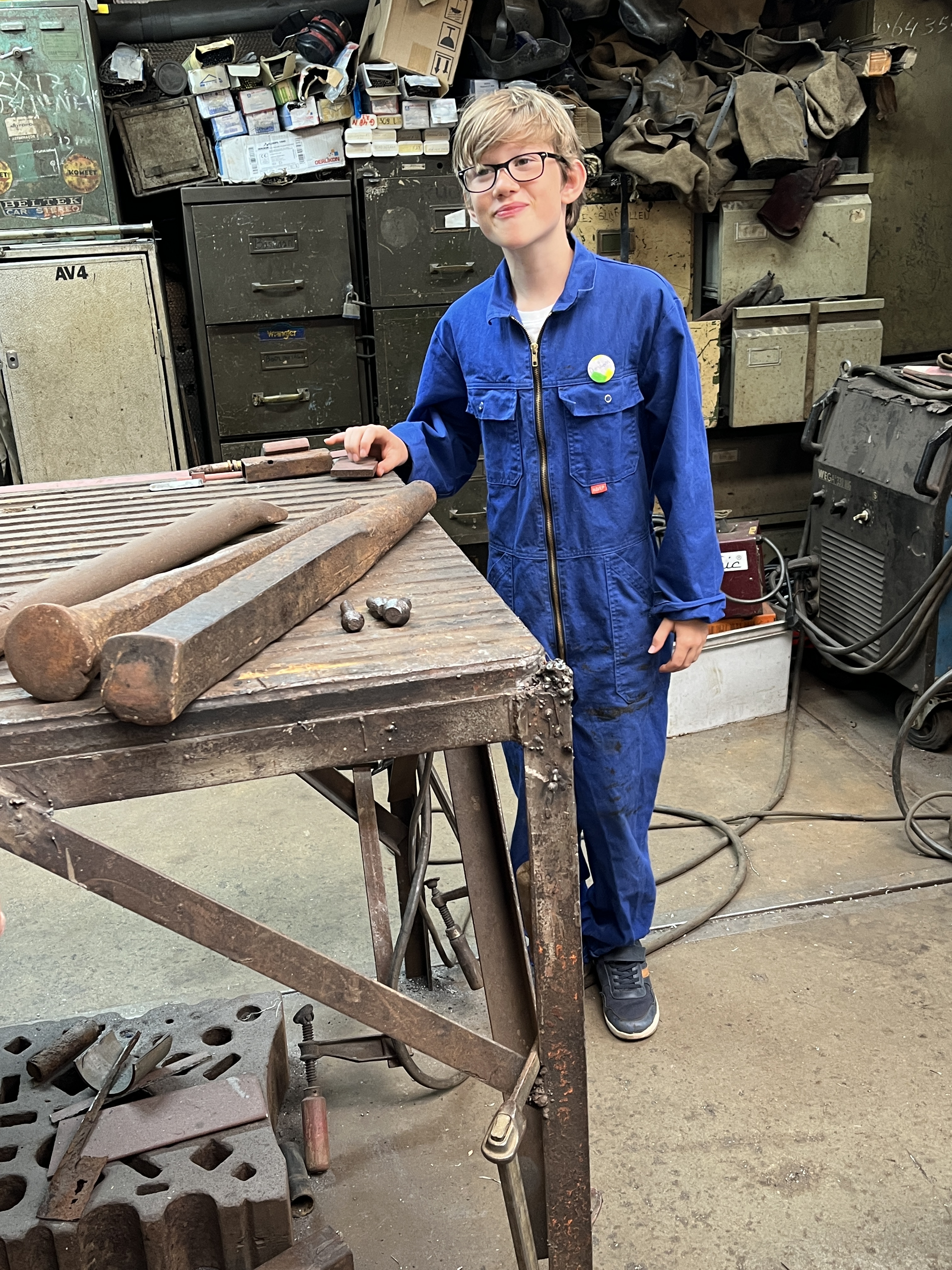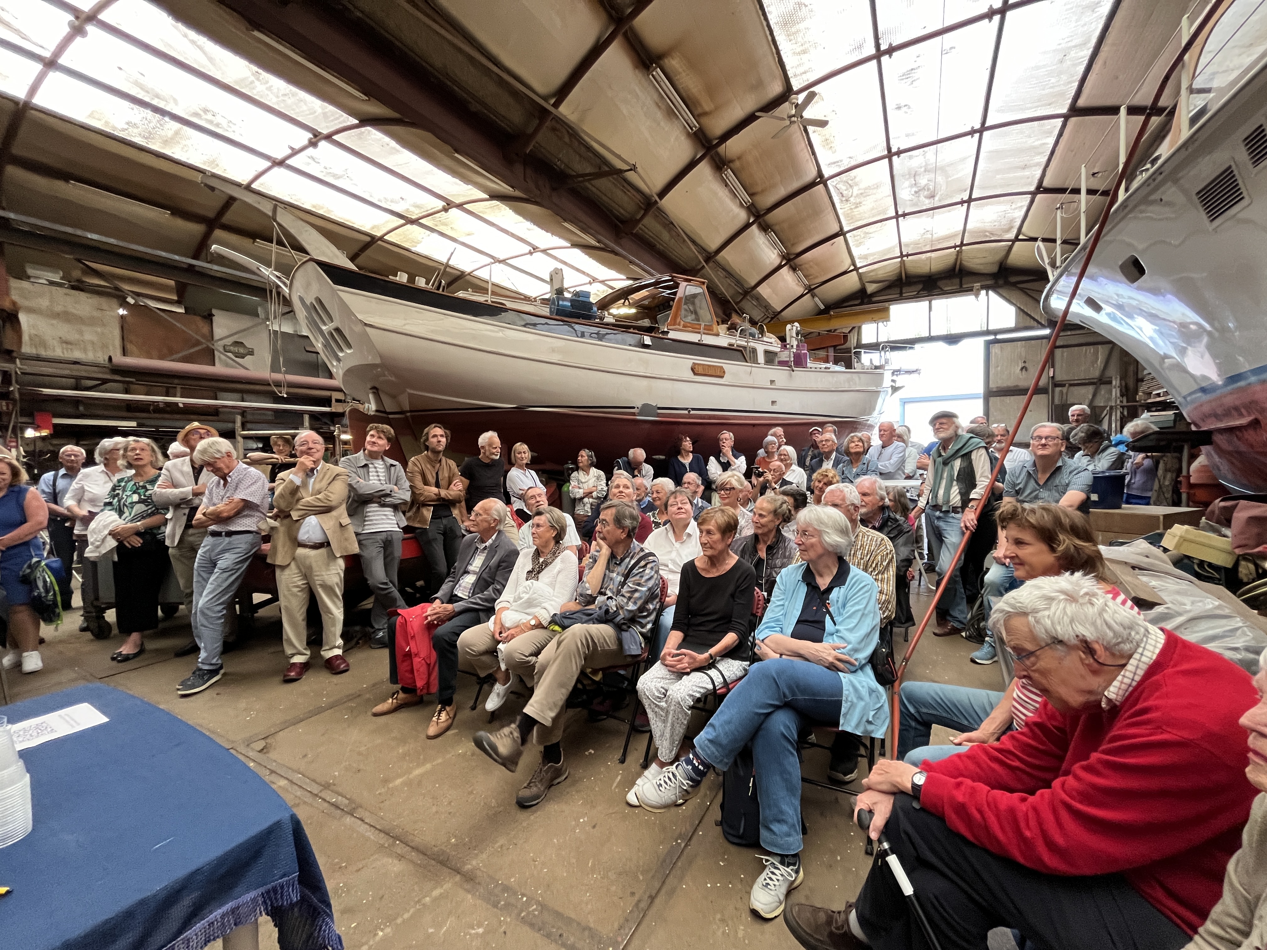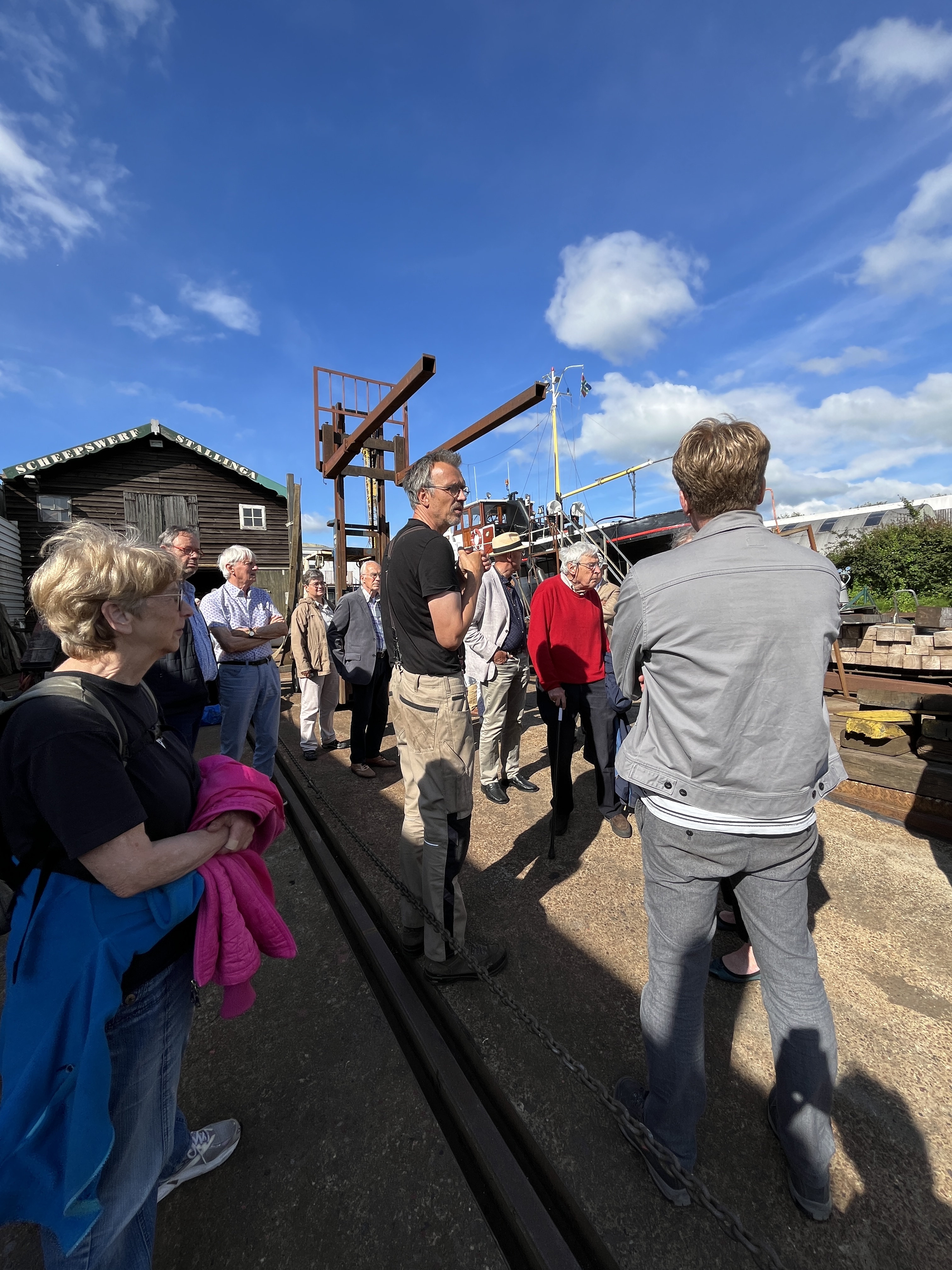 Ton Stallinga en Jan van Vliet zijn niet zo van de voordrachten, maar laten liever alles zien met de bijbehorende verhalen. Ook Reinier Verbeek (van het schip de Vriendschap) verzorgt rondleidingen om aan iedereen zoveel mogelijk over de werf te kunnen vertellen. En last but not least geeft de jongste “medewerker”, Dorian, een demonstratie klinknagelen.