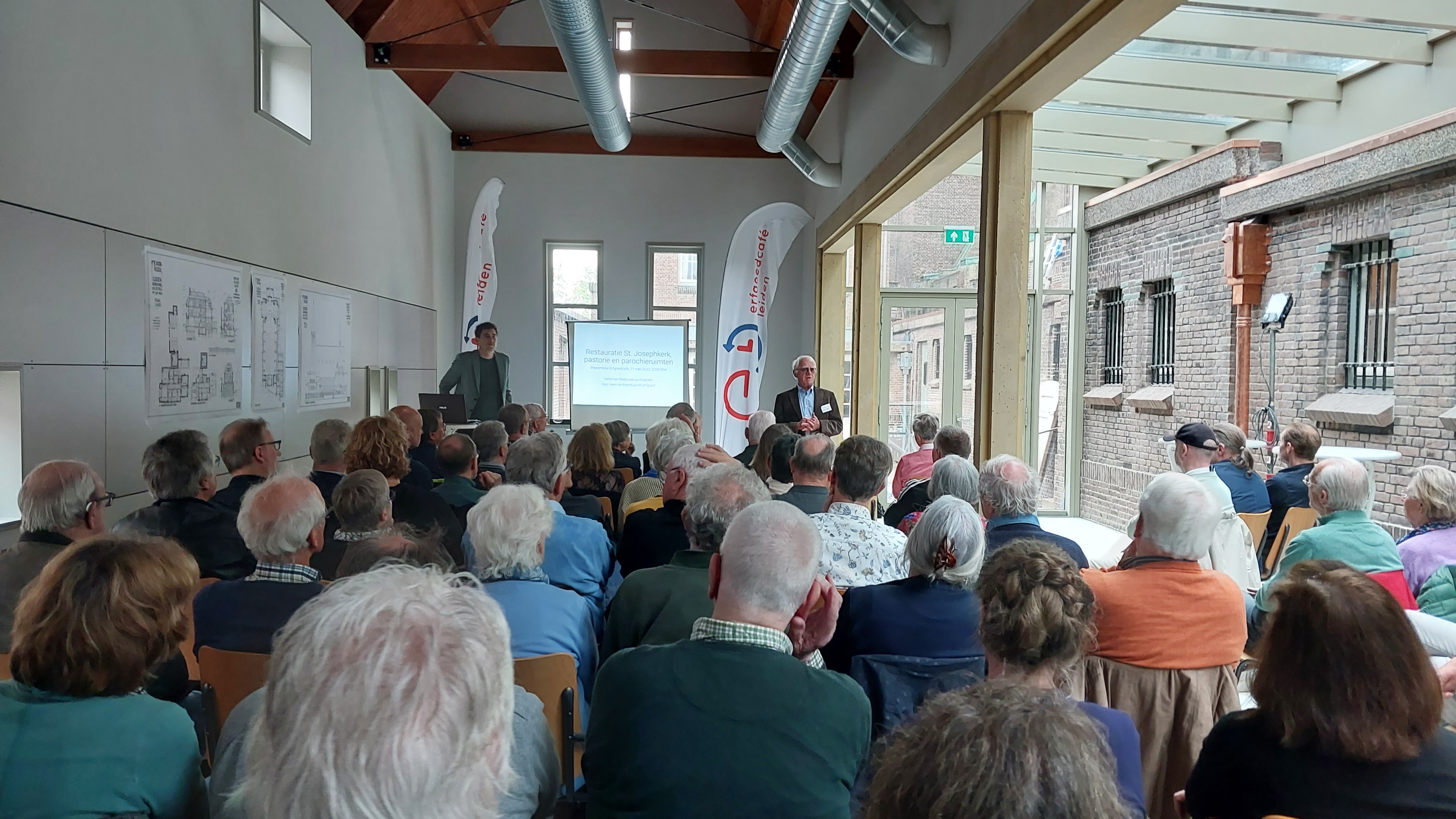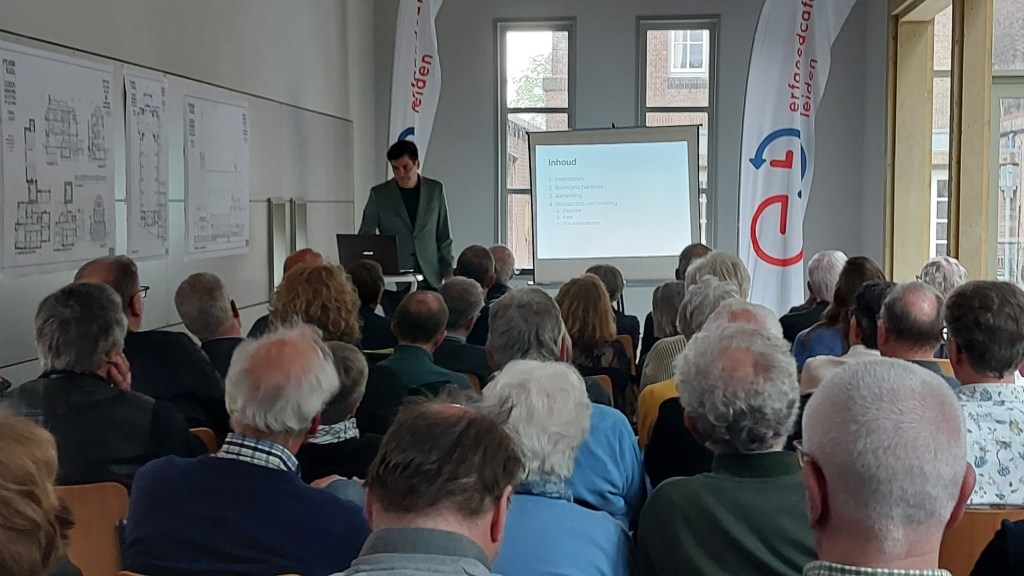 Architect Dennis van Veen vertelde tijdens het Erfgoedcafé ter plekke over de werkzaamheden. Specifiek is hij ingegaan op het herontdekken van oorspronkelijke kwaliteiten en de uitdagingen van het verbouwen en verduurzamen in deze monumentale context.