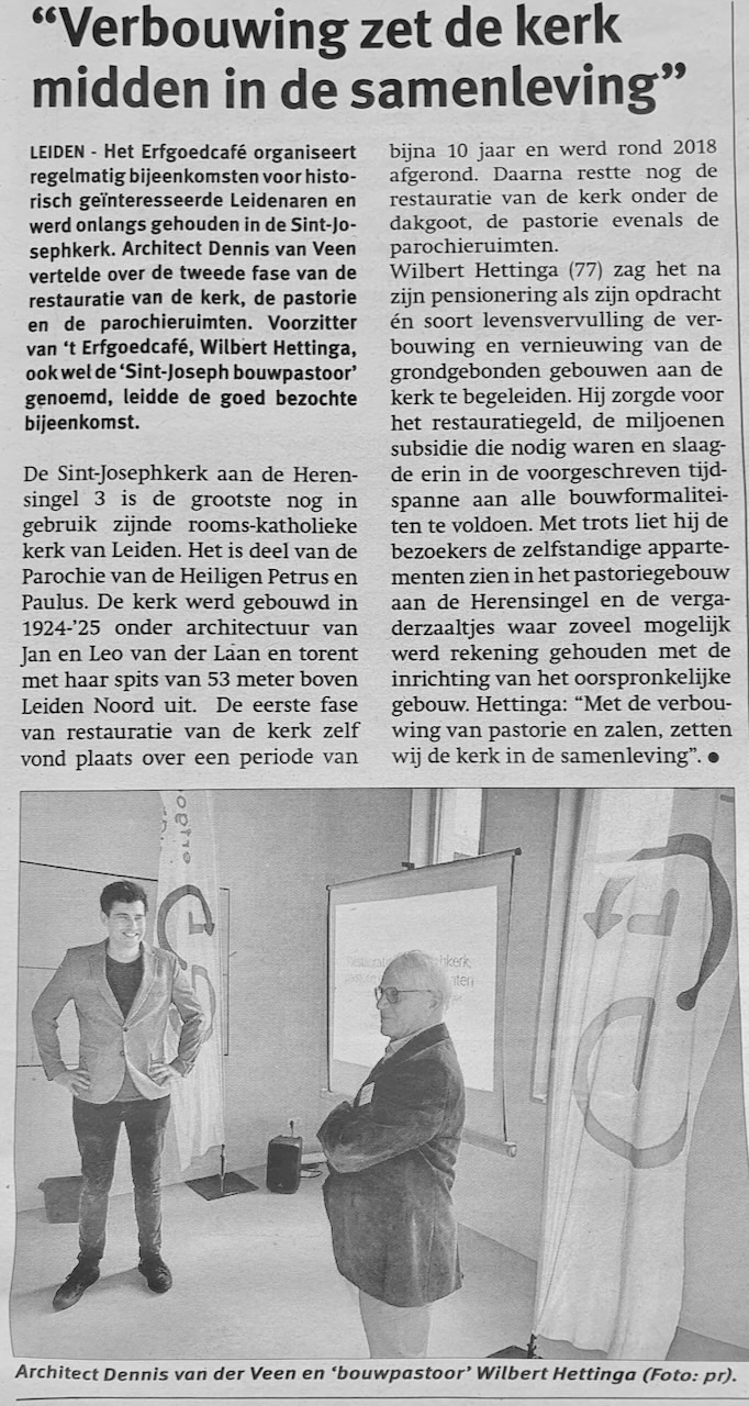 Op donderdag 11 mei was het Erfgoedcafé te gast in de St. Josephkerk, om het resultaat te bekijken van de afgeronde restauratie en verbouwing van de kerk, pastorie en parochieruimten.