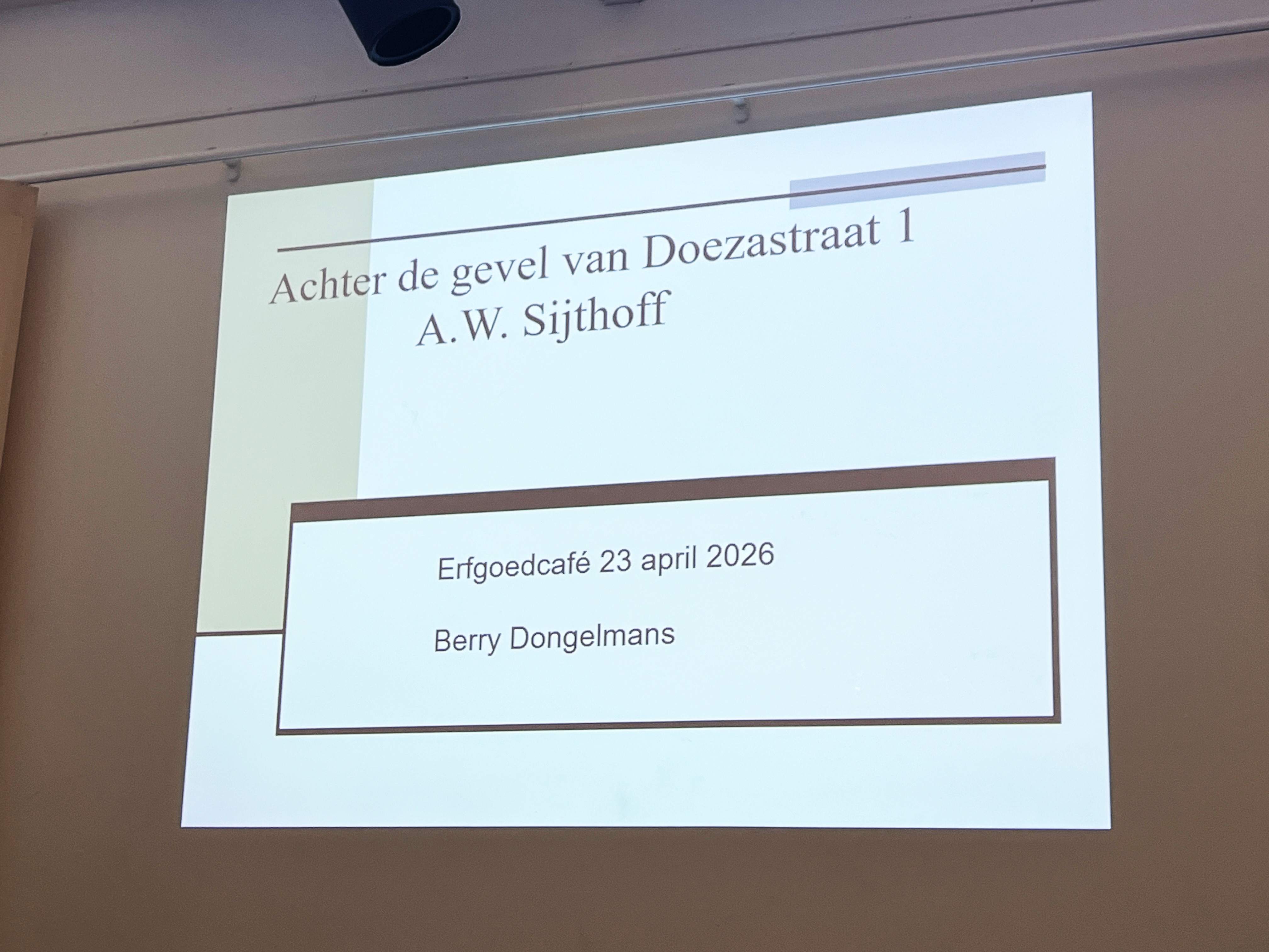 Rondom dit Erfgoedcafé is aan donaties voor de restauratie van de gevel van het Sijthoffgebouw een bedrag opgehaald van € 685,00. Onze Stichting Erfgoedcafé Leiden vult dit aan tot € 1.000,00. Inmiddels hebben wij van Sijthoff Cultuur hiervoor een bedankje gehad.