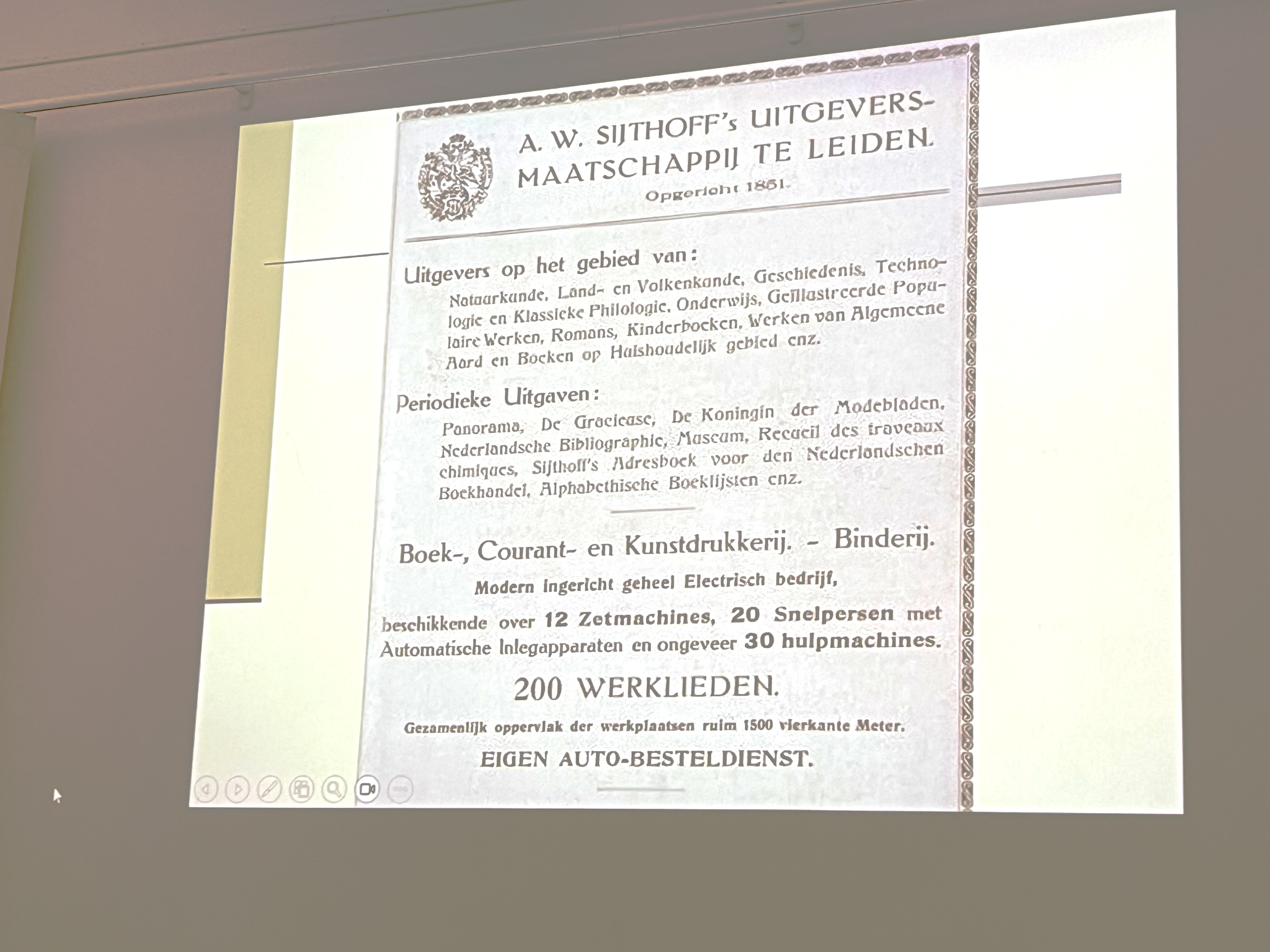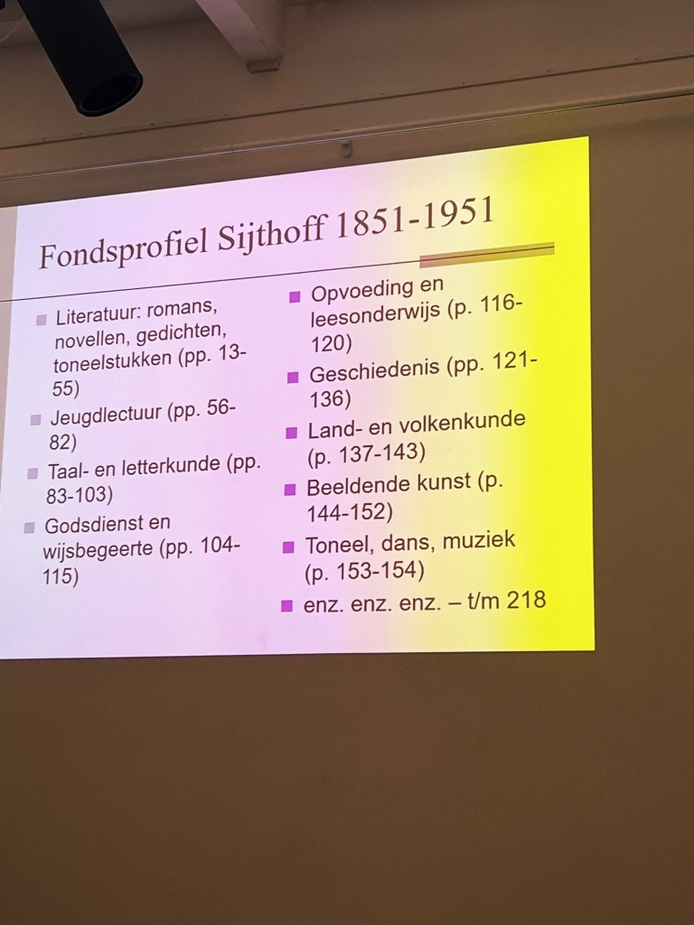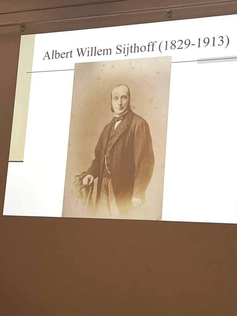 Berry Dongelmans vertelt over het Sijthoff gebouw, de inrichting en het gebruik ervan. In 1851 richt Albertus Willem Sijthoff de drukkerij / uitgeverij op. Dit nadat hij al eerder bij verschillende uitgeverijen en boekwinkels gewerkt heeft. Voordat het gebouw van architect Mulder in 1852 aan de Douzastraat verschijnt, is het bedrijf gevestigd aan de Oude Vest. Eerst is het vooral een drukkerij met een houtgraveerschool, later wordt het meer een uitgeverij.
