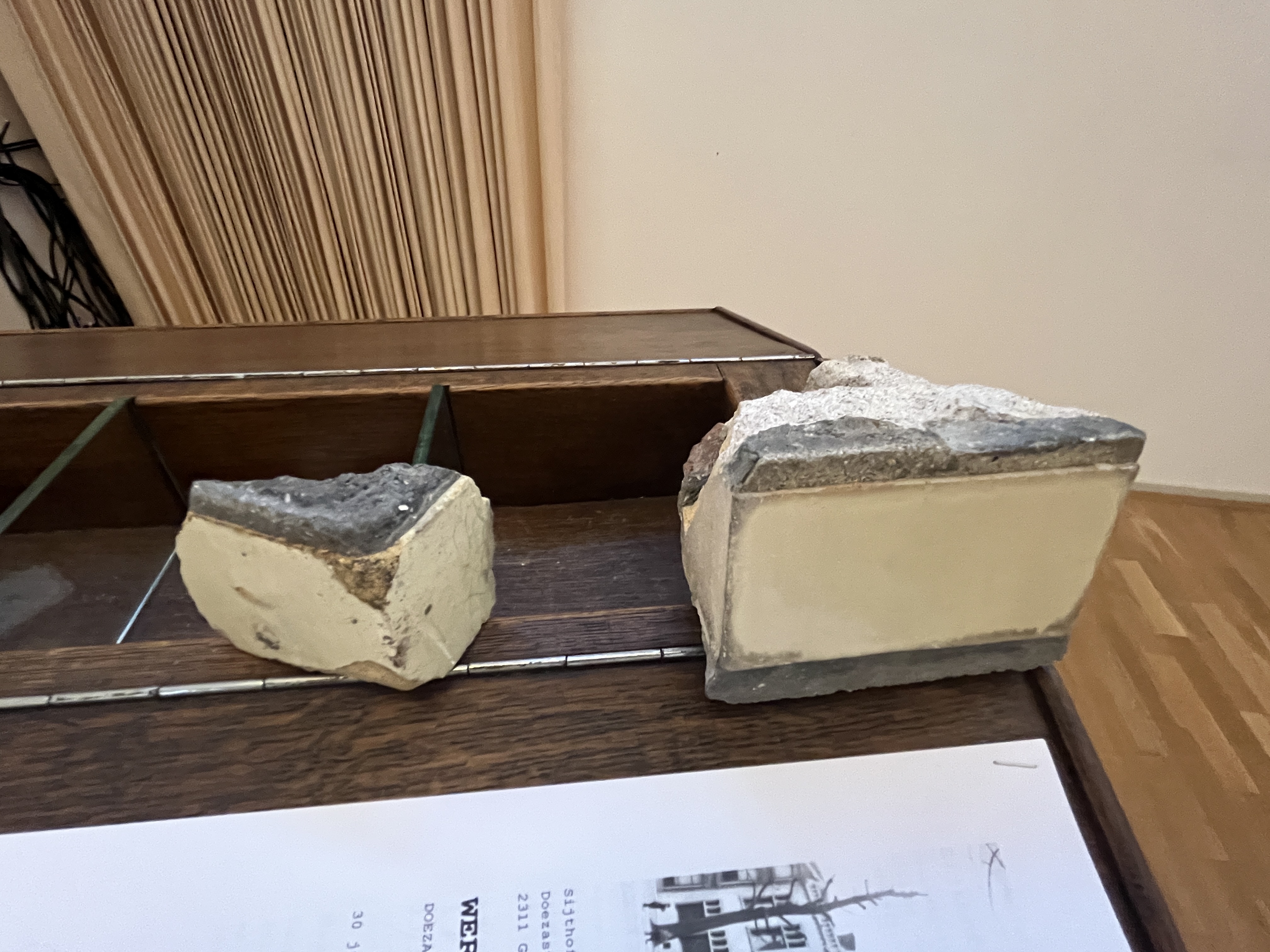 Van ieder onderdeel(tje) is in het plan van aanpak beschreven wat er mee aan de hand is en wat er aan gedaan moet / kan worden. Er is ook gekeken naar de kleur van het glazuur van de stenen in de gevel. Er is stad en land afgezocht naar bruikbare stenen, maar die zijn niet gevonden. Dat betekent dat er nieuwe stenen gemaakt moeten worden. Al met al heel interessant om te horen hoe zo’n restauratie nu wordt aangepakt. In week 36 (1e week van september) gaat de restauratie daadwerkelijk van start.