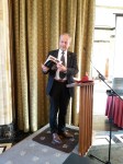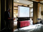 Jan Lakerveld van bouwbedrijf Jurriëns West gaf een korte inleiding over de onlangs afgeronde onderhoudsbeurt aan het exterieur van het stadhuis. De interieurs van de bestuursverdieping werden een aantal jaar geleden al gerestaureerd. Om de resultaten hiervan vast te leggen publiceerde Erfgoed Leiden en Omstreken (ELO) Het Stadhuis van Leiden. De restauratie van de bestuursverdieping. Dit boekje werd tijdens het Erfgoedcafé door Martijn Andela van ELO overhandigd aan burgemeester Lenferink.