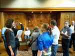 Tijdens rondleidingen door medewerkers van ELO konden bezoekers een kijkje nemen in de kamer waar het college van Burgemeester en Wethouders vergadert en de werkkamers van de burgemeester en de gemeentesecretaris. Vooral de bijzondere houtsnijwerken van M.C. Esscher werden veelvuldig op de gevoelige plaat vastgelegd. En uiteraard konden sommige aanwezigen de kans niet voorbij laten gaan om aan het bureau van de burgemeester plaats te nemen en zich voor even zelf burgervader (of –moeder) te wanen.