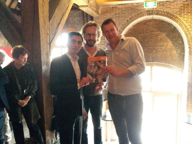 Previous ImageNext Image 20160407_173108 Wethouder Laudy (l) overhandigt de brochure aan Johan Klerks en Bob Meijer van Visbrasserie De Poort Vind-ik-leuk Aan het laden...