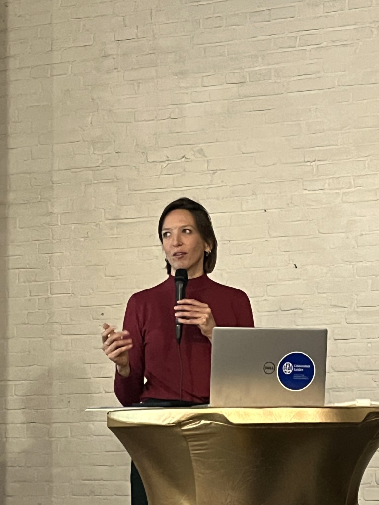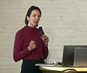 Als eerste spreekt Inge van den Berg, ontwerper openbare ruimte, landschap en werkzaam bij de Gemeente Leiden. Een van de projecten waar zij zich mee bezig houdt is het Singelpark.