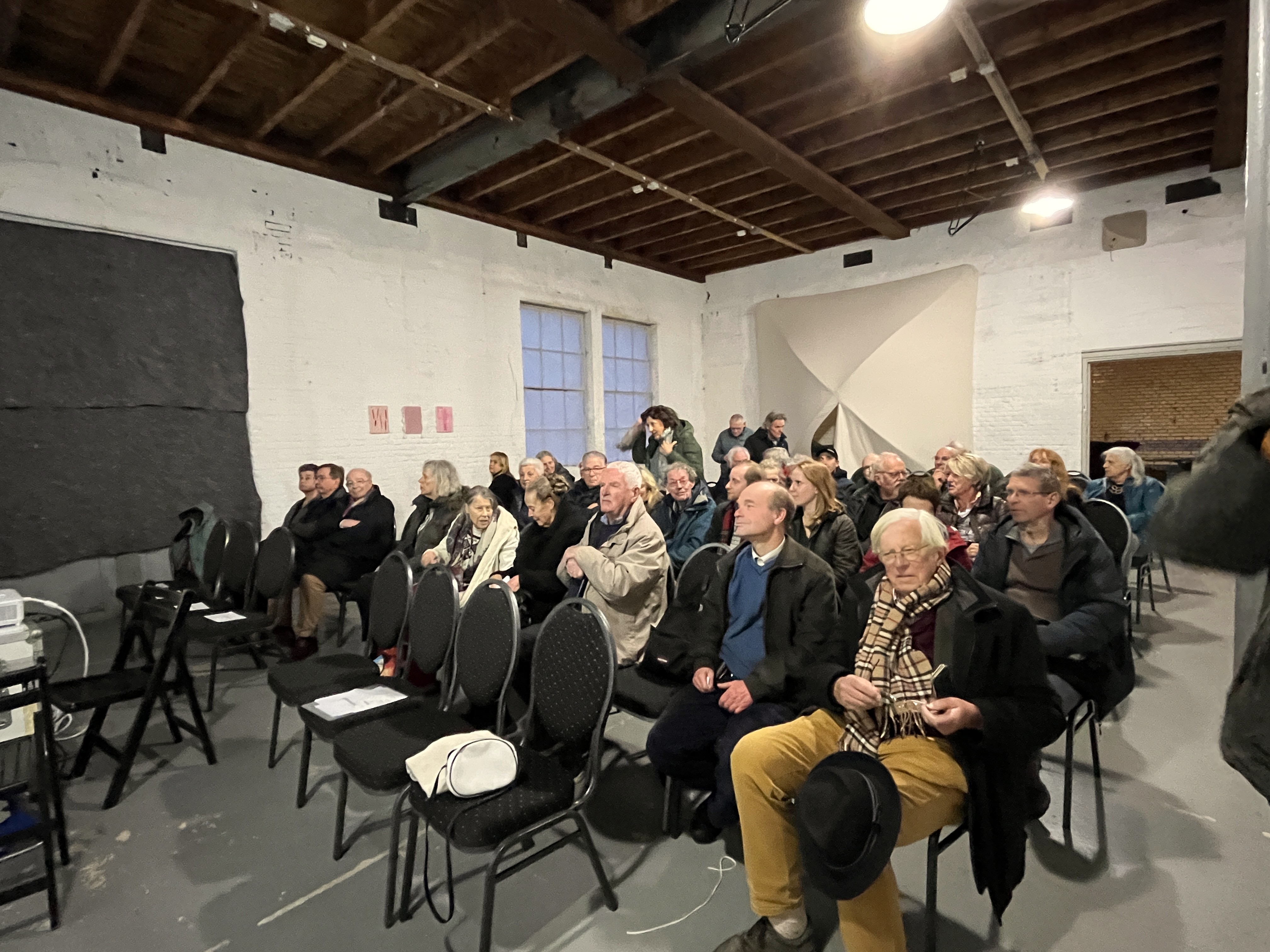 In een wat koude omgeving van de historische Watergasfabriek heeft het Erfgoedcafé plaatsgevonden. Het thema is deze keer Leids Groen, zowel historisch gezien als m.b.t. het Singelpark. De opkomst is erg hoog met een kleine honderd mensen.