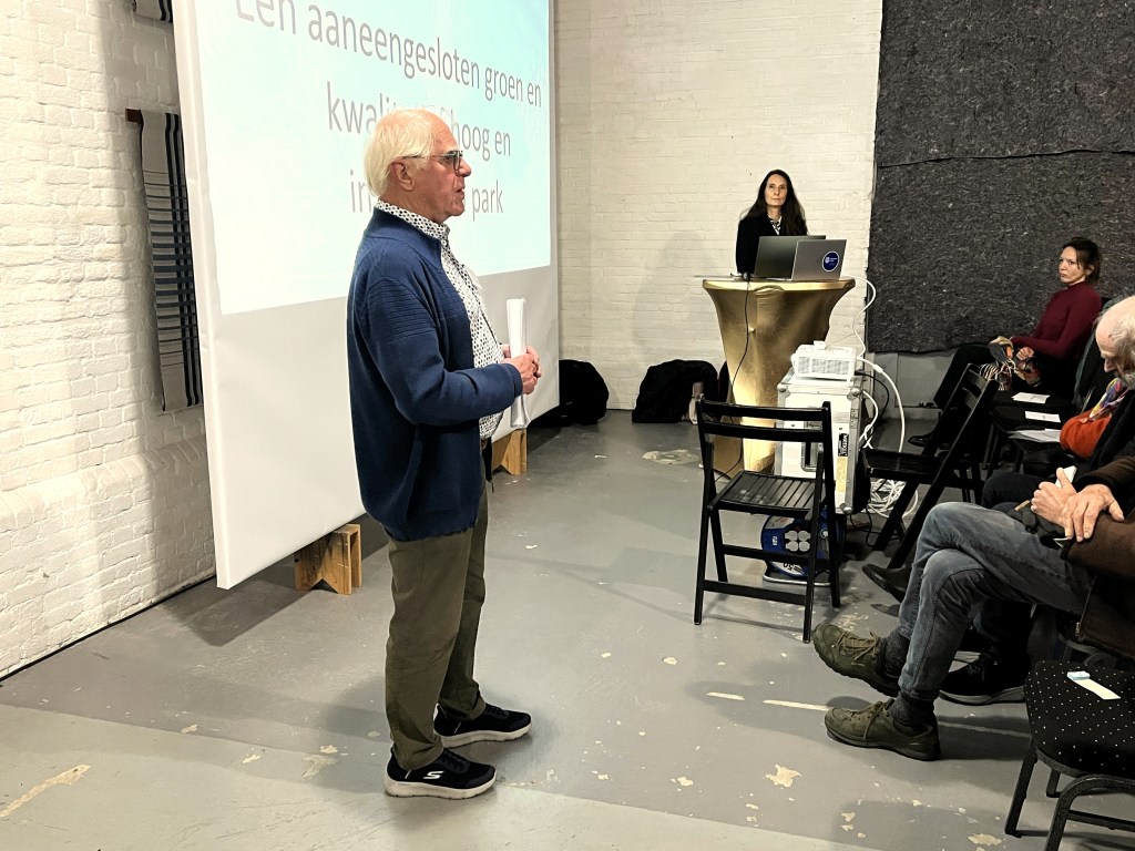 Evelien Winkel doet een oproep voor vrijwilligers in het Singelpark: van tuinieren tot redactie van teksten voor de website tot projectleiders voor deelprojecten.