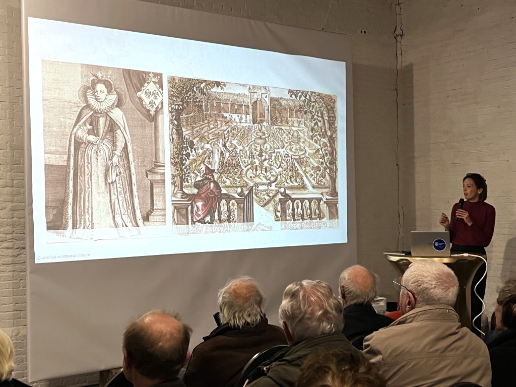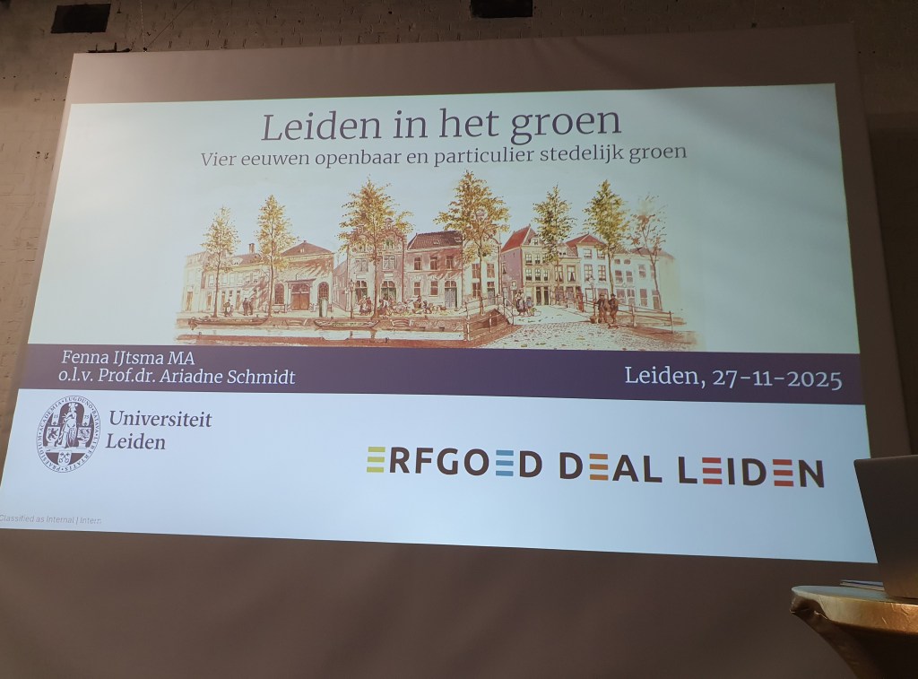 Als tweede spreekt Fenna IJtsma. Zij is medewerker publieksdiensten bij de Universitaire Bibliotheek van Universiteit Leiden. Zij heeft onlangs onderzoek gedaan naar vier eeuwen Leids groen: “Leiden in het groen”.