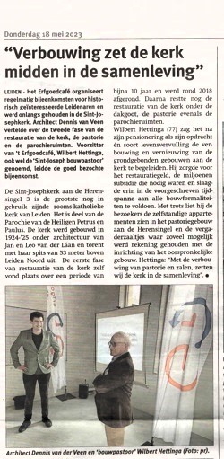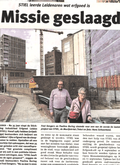 Leids Nieuwsblad 8 september 2023: Afscheid van Stiel met een Erfgoedcafé