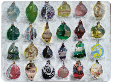 Na een cursus collage-maken te hebben gevolgd, is Hetty Rijs enthousiast aan de slag gegaan en heeft inmiddels haar eigen stijl ontwikkeld. Met behangplaksel en gescheurd papier uit allerlei magazines, maar ook inpakpapier en gebruikt papier, maakt zij kleurrijke collages met daarop herkenbare objecten.